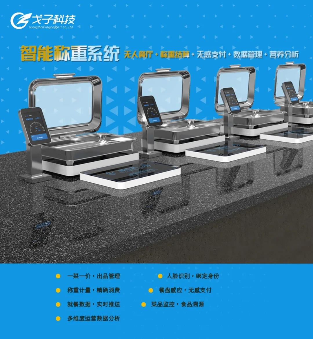 戈子科技的智能稱重結算系統集成了稱重傳感模塊和RFID讀寫裝置,通過感應進入讀寫區域的托盤和菜盆打菜前后的重量變化,計算出取菜菜品重量,實現智能稱重計量,無感自動支付,并通過顯示菜品的營養成分和消費記錄推薦提醒,并為食堂提供管理端進行報表分析、稱重設備管理等平臺,引導就餐者適量取餐,科學用餐。